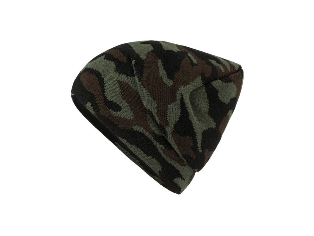 Dvojitě pletená čepice, vzor camouflage, bez manžety