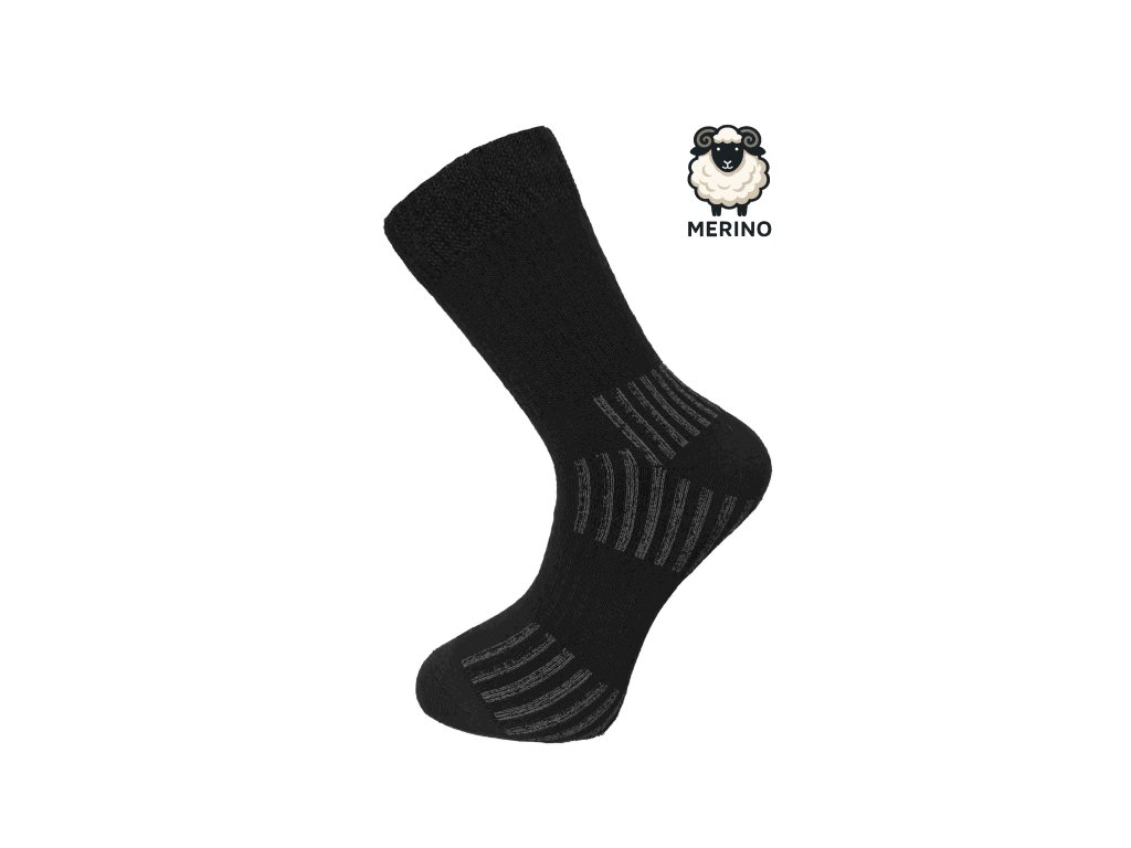 Lem ponožek je volný a proto nijak nohu nestahují, přesto však na noze krásně sedí. Ovčí vlna Merino má mnoho skvělých vlastností jako například teplotní stabilitu, a proto se vám nohy v ponožkách z ovčí vlny nebudou potit, protože vlna vlhkost absorbuje.