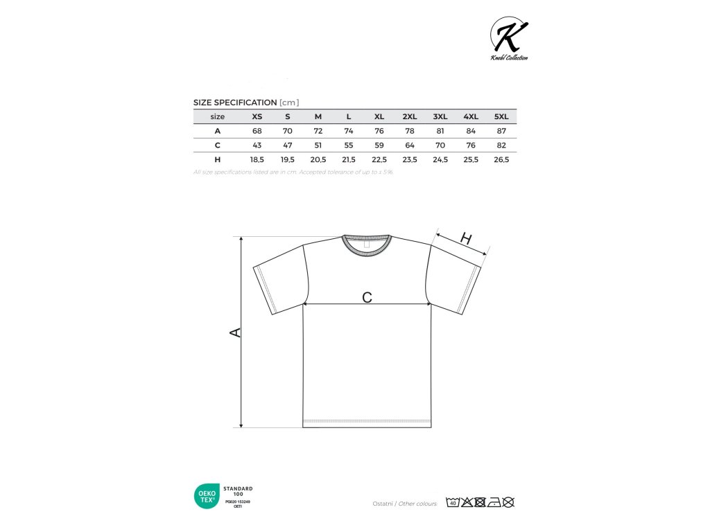 Kvalitní pánské tričko střední gramáže. Kvalitní průkrčník s přídavkem 5 % elastanu se zpevňující ramenní páskou. Silikonová úprava úpletu. Trup po stranách beze švů.
