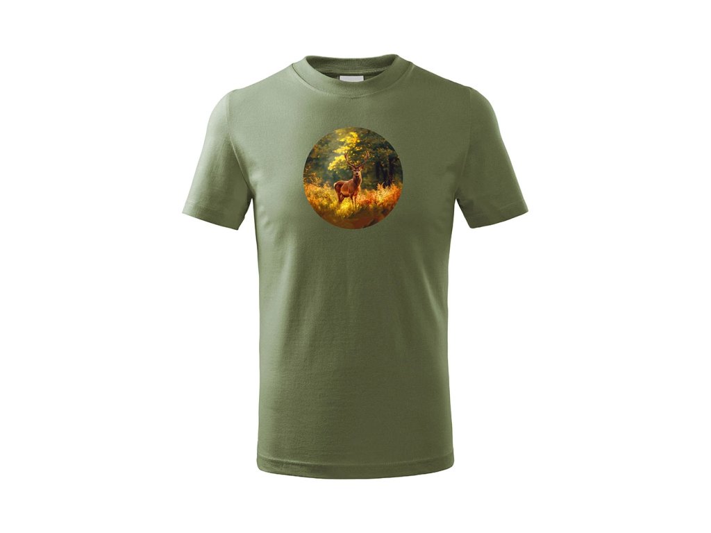 Myslivecké Tričko Jelen barevný potisk – Spolehlivý pomocník do lesa, který nabízí pohodlí a funkčnost.