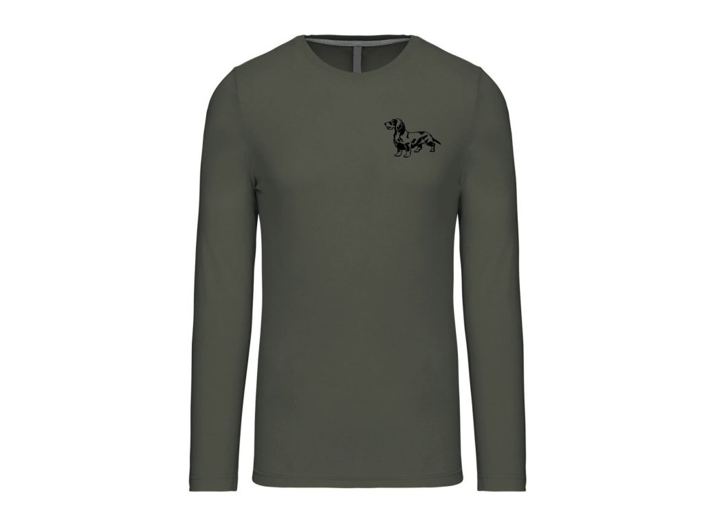 Myslivecké Tričko Jezevčík malý dlouhý rukáv – Ideální volba pro každého myslivce, se zaměřením na komfort a odolnost.