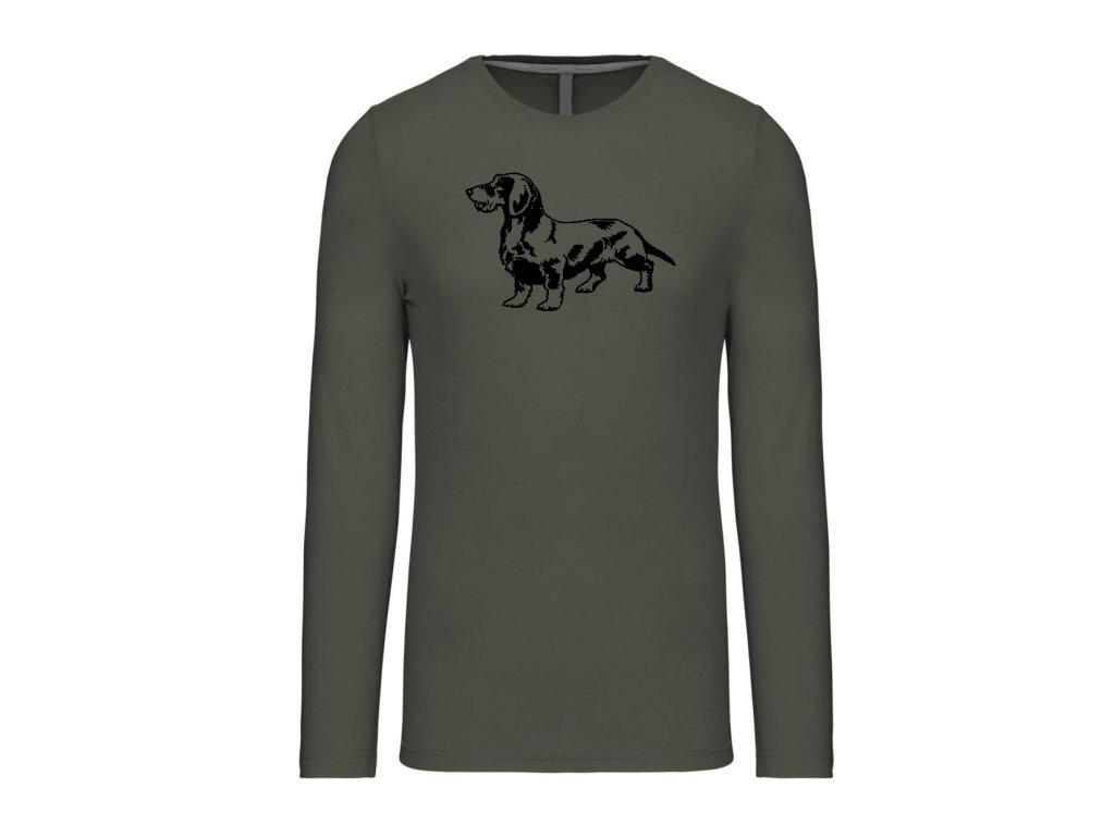 Myslivecké Tričko Jezevčík dlouhý rukáv – Ideální volba pro každého myslivce, se zaměřením na komfort a odolnost.