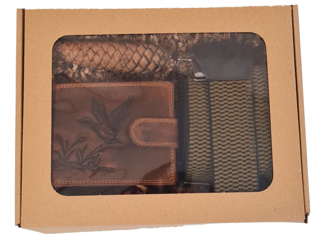 Myslivecký dárkový set - Kožená peněženka a kšandy