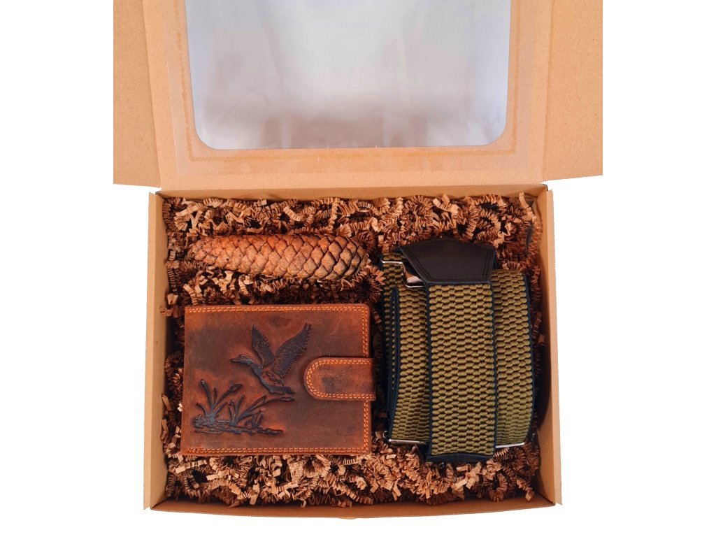 Myslivecký dárkový set - Kožená peněženka a kšandy – Praktický kousek do přírody, pro lepší organizaci vybavení.